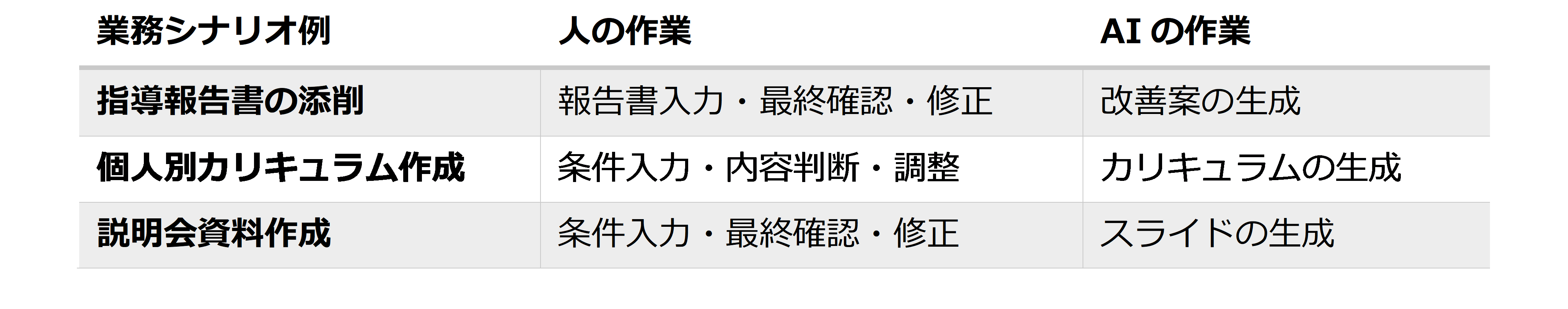 スクールTOMASでは、以下の業務シナリオを題材に、「人」と「AI」それぞれがどのように分担・協力すべきかを設計のうえ、実演・実践を実施しました。